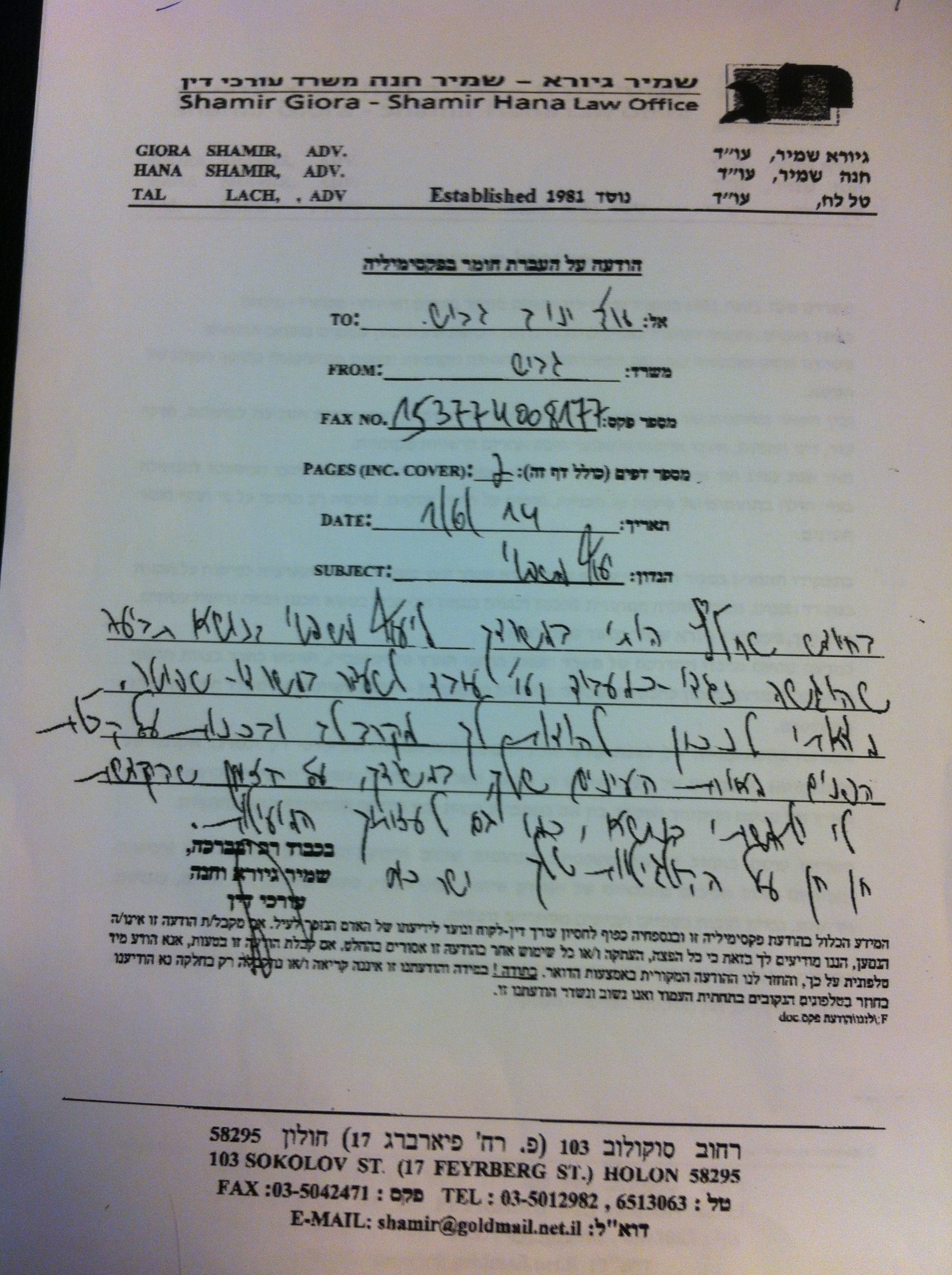 / שמיר גיורא וחנה עורכי דין - 1.6.2014